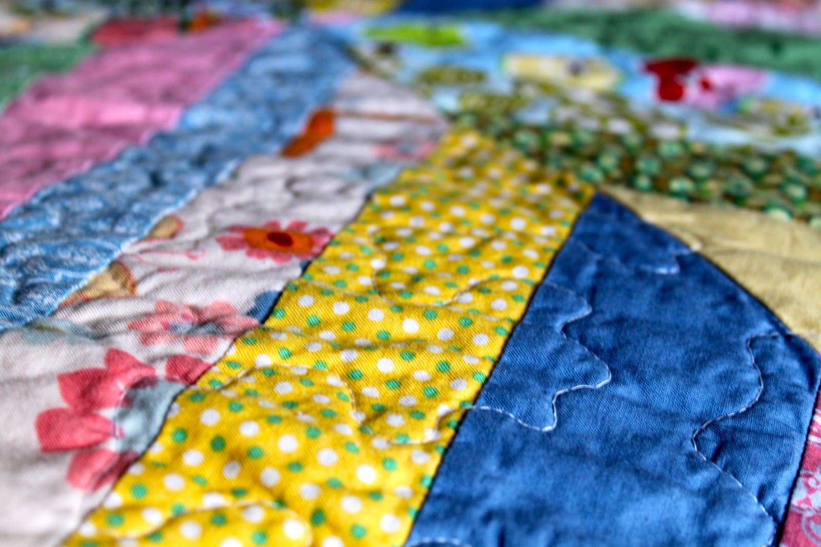The quilting of this quilt on my little home machine was a less than enjoyable experience.